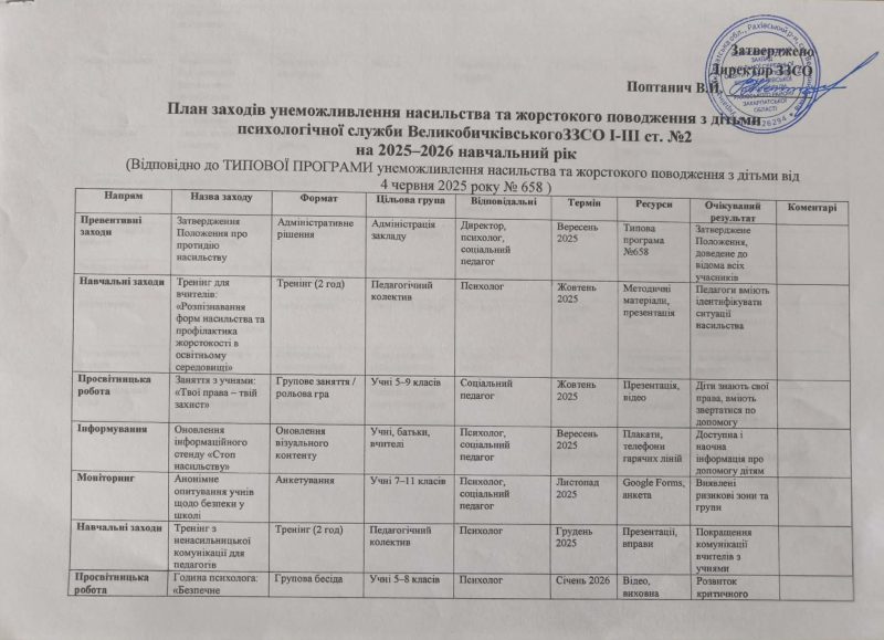 by Адміністрація•Posted 6 Березня, 2026•0 Comment(s) Навігація записів PreviousПоложення про запобігання , протидія насильству та жорстокому поводженню з дітьми у Великобичківському ЗЗСО І-ІІІ ст. №2NextНаступний запис Залишити відповідь Скасувати коментарВаша e-mail адреса не оприлюднюватиметься. Обов’язкові поля позначені *Your commentYour name * Your email * Your website Δ Цей сайт використовує Akismet для зменшення спаму. Дізнайтеся, як обробляються дані ваших коментарів.